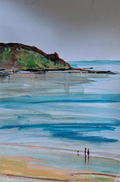 Beach Scene 8 Original Mixed Media On Paper 38 19 Picclick Au
